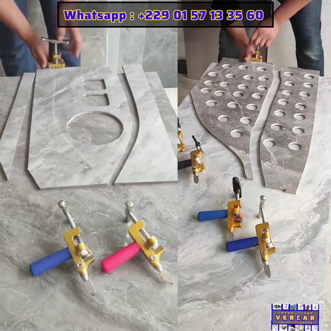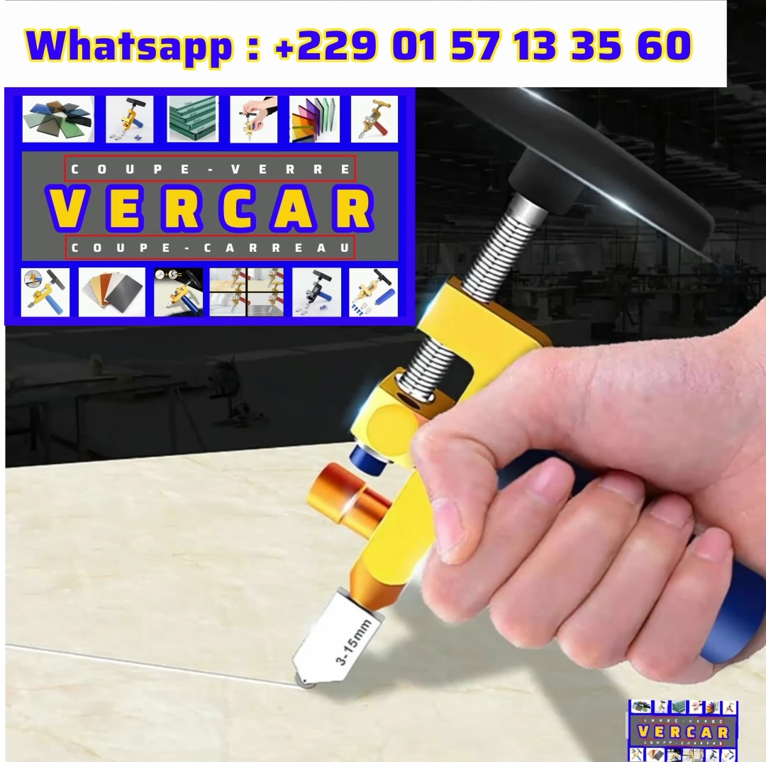 VERCAR : L'OUTIL RÉVOLUTIONNAIRE DES VITRIERS ET DES CARRELEURS VERCAR est le nouveau outil à double fonction pour les vitriers et les carreleurs : Il coupe et divise facilement en deux parties les verres et les carreaux. VERCAR est résistant, durable et facile à utiliser. Si vous êtes un vitrier, VERCAR vous permet de couper les verres de différentes épaisseurs et d'autres matériaux durs tels que les miroirs et les plaques de verres.Si vous êtes un carreleur, VERCAR est très efficace pour couper les carreaux de céramique, de porcelaine et de pierres naturelles. Avec sa lame en carbure très dure de haute qualité, VERCAR vous permet de couper facilement avec une précision extrême les verres et les carreaux de tout type.Son design ergonomique lui confère une prise en main confortable et une utilisation facile. Ce qui vous permet de réaliser des coupes droites et courbes ;des designs personnalisés et complexes, avec une facilité déconcertante. Que vous voyez vitriers ou carreleurs professionnels ou amateurs ; vous travaillez sur un projet de rénovation, de construction ou de décoration ;Vous cherchez un outil ultime pour réaliser des coupes précises, rapides et designs personnalisés, VERCAR est la solution.C'est le nouveau coupe-verre /coupe-carreau spécialement conçu pour répondre aux besoins des professionnels comme vous ! Utilisez VERCAR pour améliorer votre productivité tout en offrant des résultats de haute qualité à vos clients. Pour acheter VERCAR, contactez-nous par WhatsApp au numéro +229 01 57 13 35 60